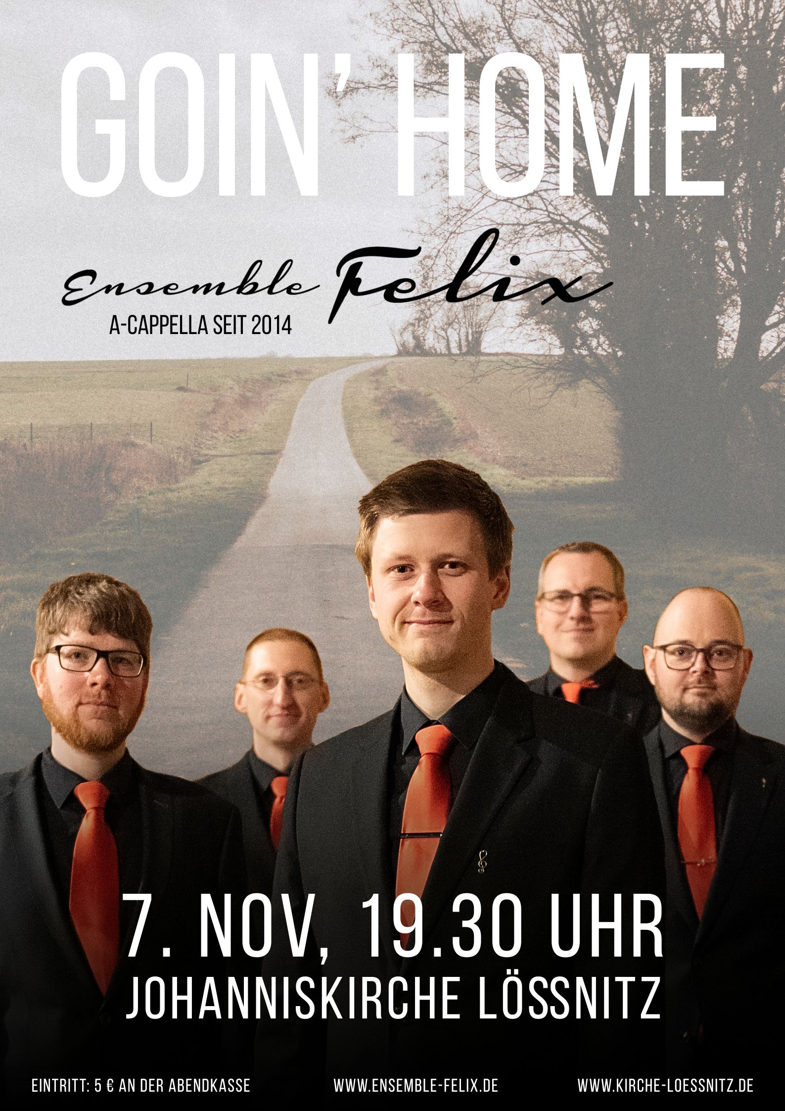 Nach dem Jubiläumsjahr und den damit verbundenen Höhepunkten ging es für uns im folgenden Jahr um Heimat und Zuhause. Drei Gedanken trugen uns durch die Konzerte: Vor dem Heimkommen muss das Losgehen stehen. Davon sangen wir mit wunderbaren die Natur nachzeichnenden Sätzen wie Der frohe Wandersmann von Felix Mendelssohn Bartholdy und dem Waldlied von Moritz Hauptmann. Die geistliche Heimat hier mit wunderbaren Kirchen und dort in Gottes Ewigkeit bedachten wir mit Werken wie Anton Bruckners Locus iste oder Gabriel Faurés Pie Jesu. Außerdem besangen wir das Goin' Home unserer Nachbarn mit Liedern aus England, Frankreich und Spanien. Titelgebend aber war Dvoraks Largo aus der Sinfonie Aus der Neuen Welt, welches diesen roten Faden wunderbar mit allen anderen verwob.